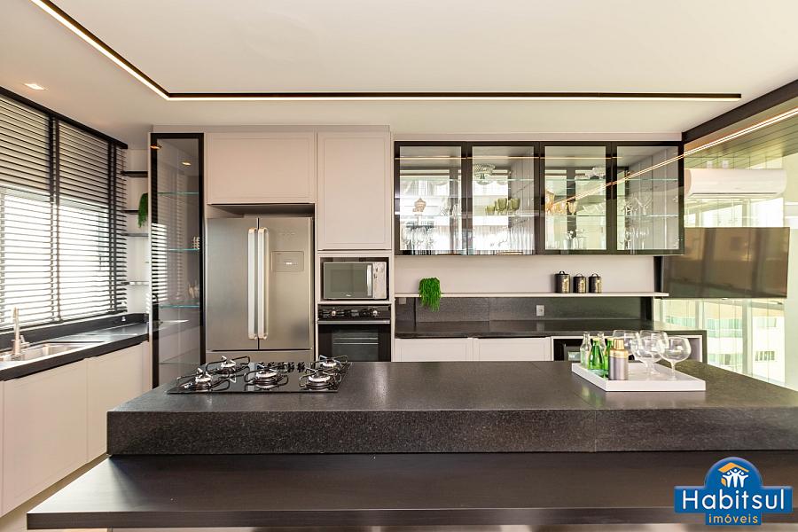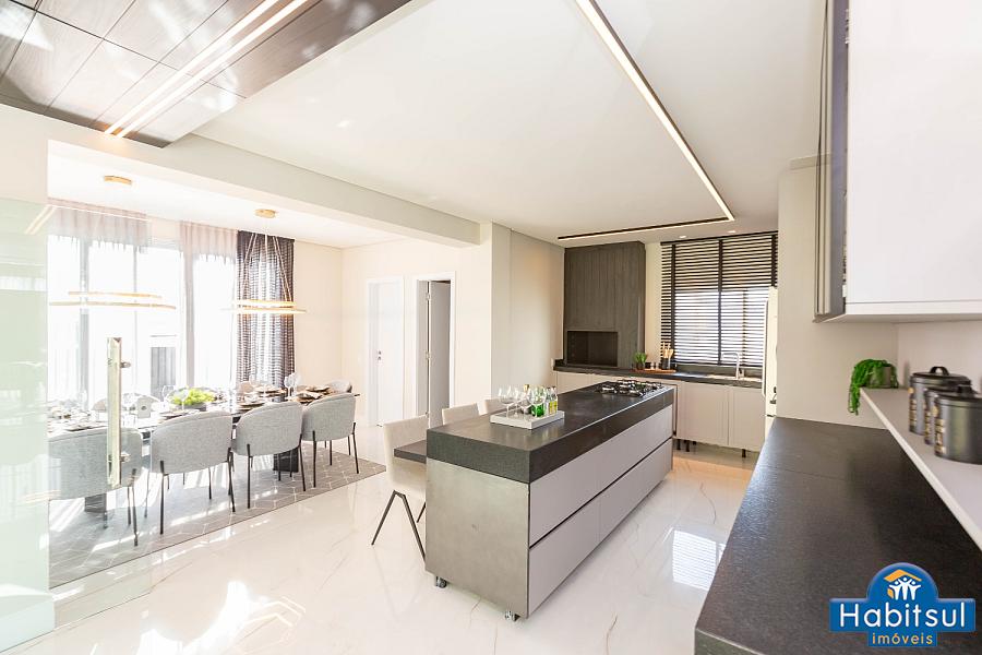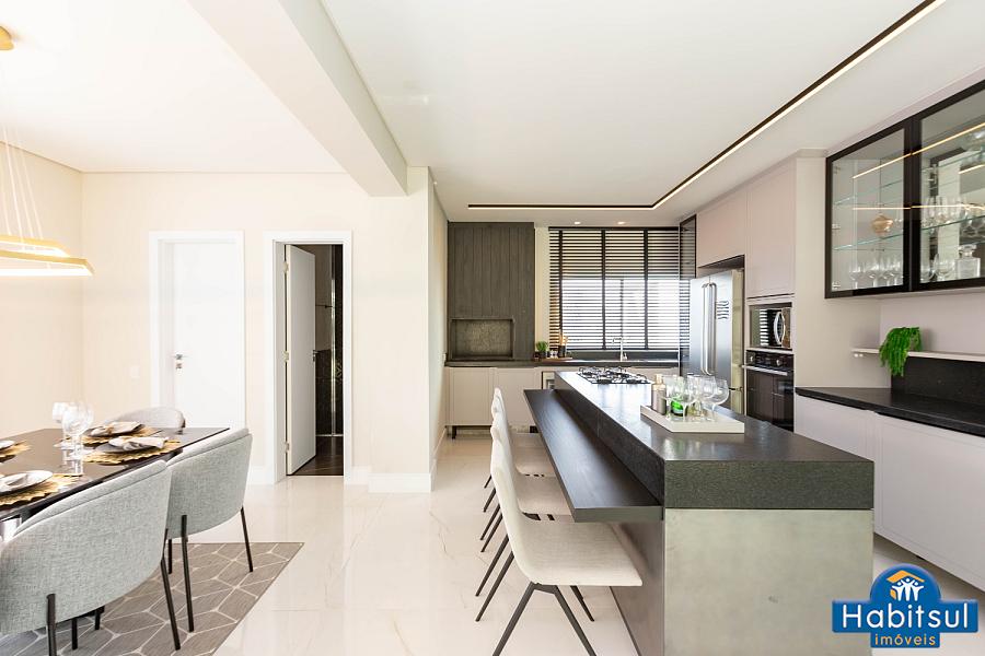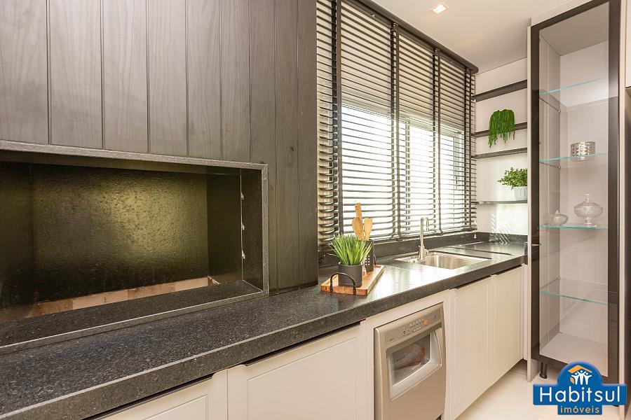Cozinha com Gourmet integrado e churrasqueira a carvão