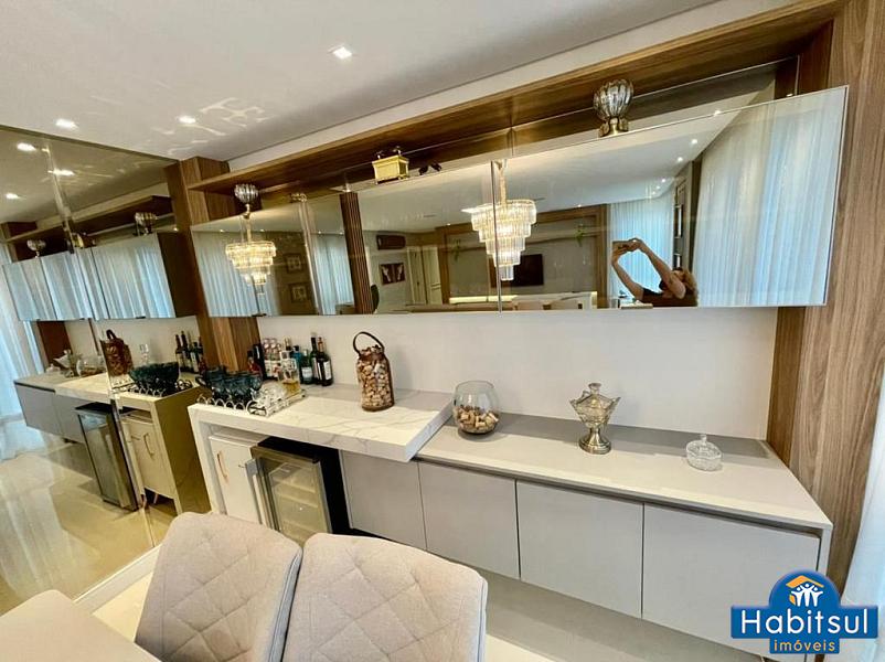 168 m² de área privativa sendo distribuido em 4 Suítes sendo 1 master com closet e hidromassagem todas finamente mobiliadas e decoradas - VISTA MAR DE 2 SUÍTES, SACADA E COZINHA