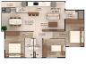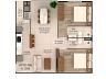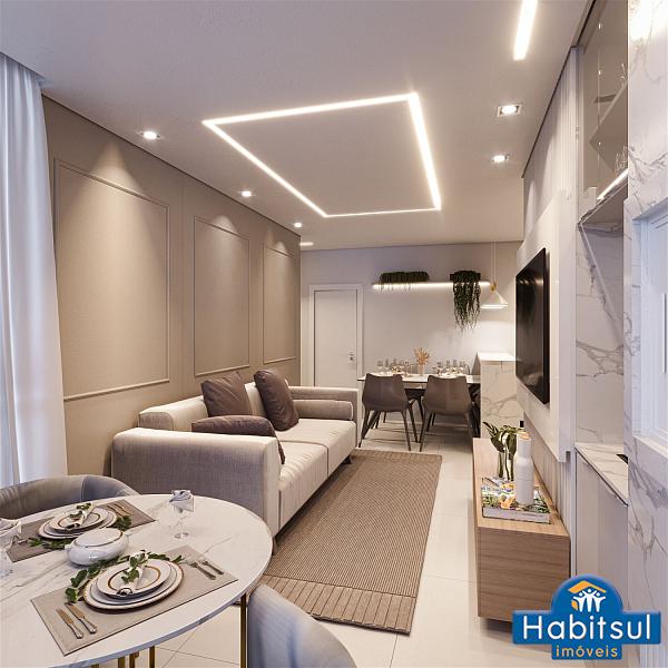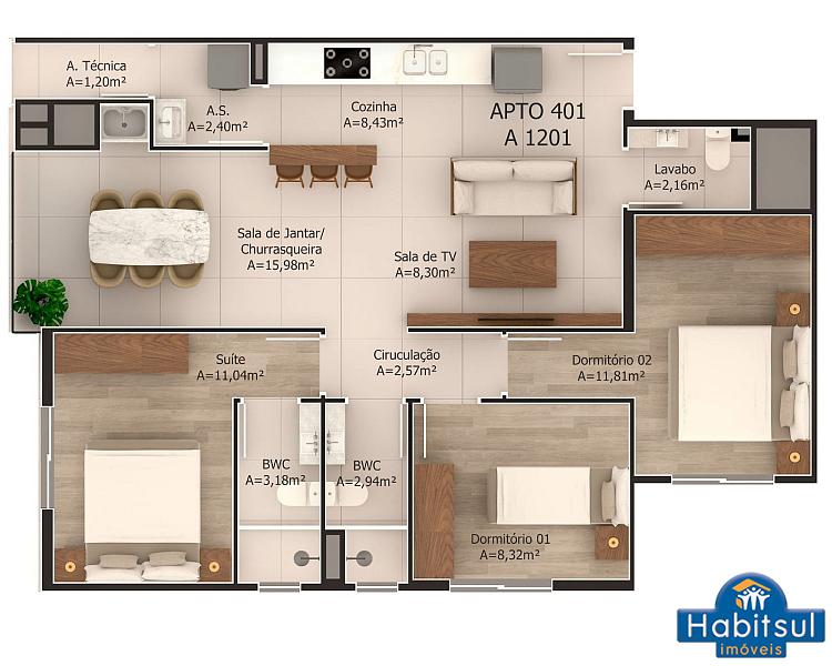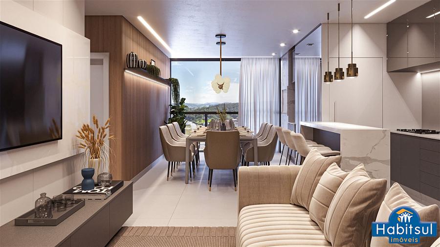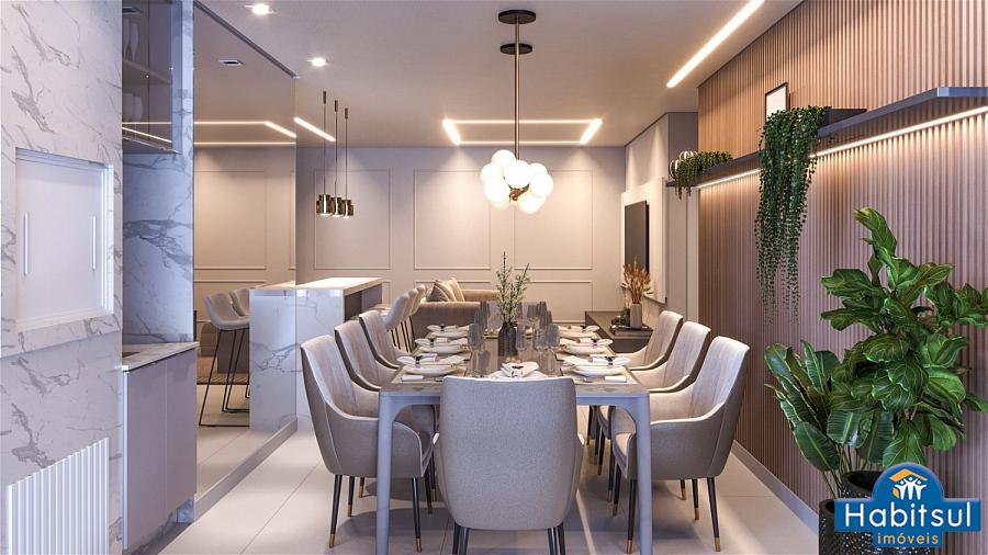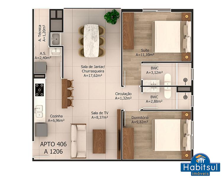 Metragens que variam, entre 80m² a 86m² de área PRIVATIVA, distribuídos: sala de estar e jantar com churrasqueira, cozinha, área de serviço com área técnica, 1dormitório + 1 suíte ampla, banheiro social e 1 vaga de garagem privativa.